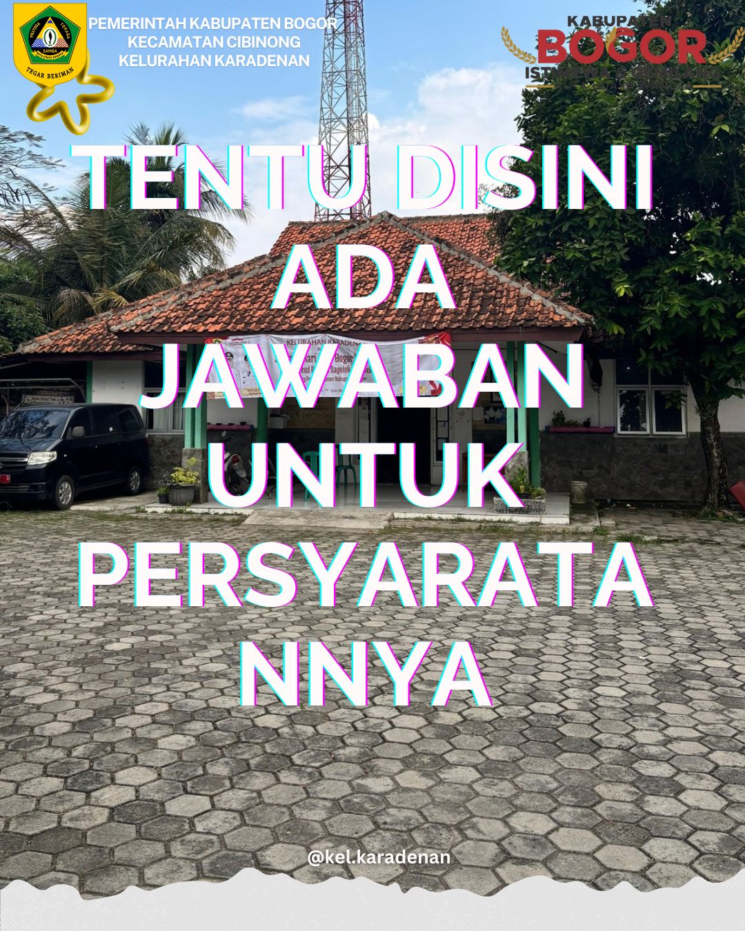 Kelurahan Karadenan Kecamatan Cibinong merupakan satu dari 19 kelurahan yang berada di Kabupaten Bogor. Dasar Organisasi Kecamatan dan Kelurahan di Kabupaten Bogor adalah Peraturan Bupati Bogor Nomor 73 Tahun 2016 tentang Kedudukan, Susunan Organisasi, Tugas dan Fungsi s...